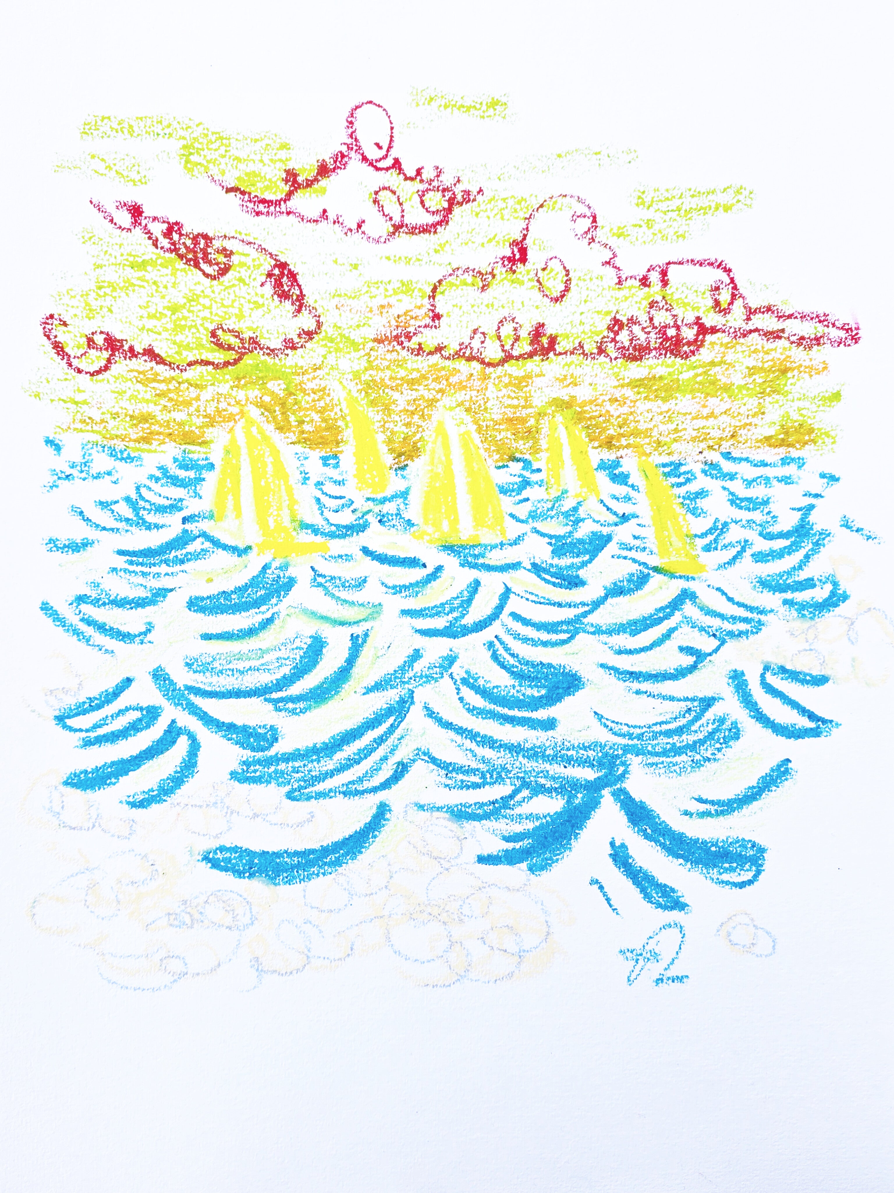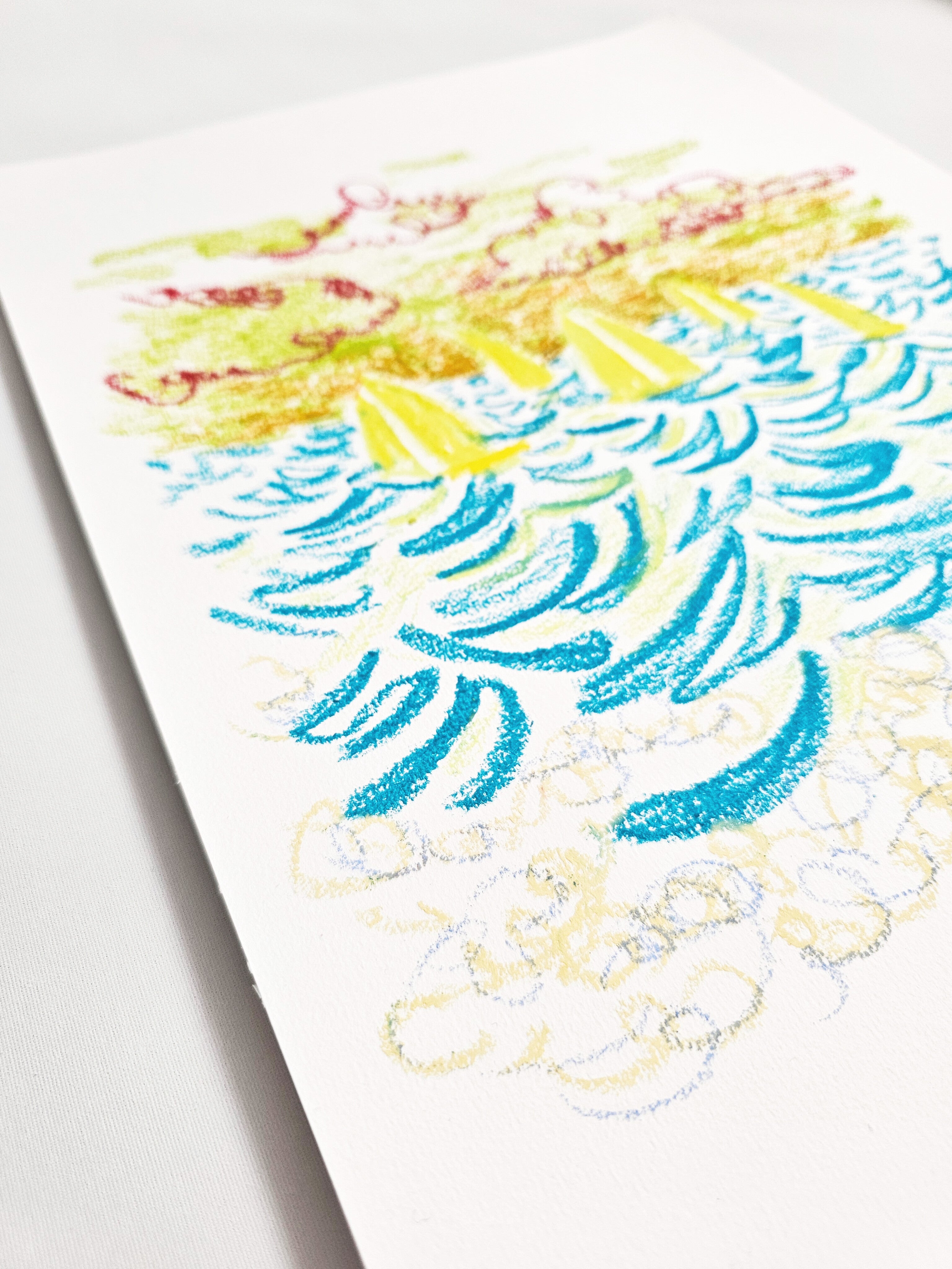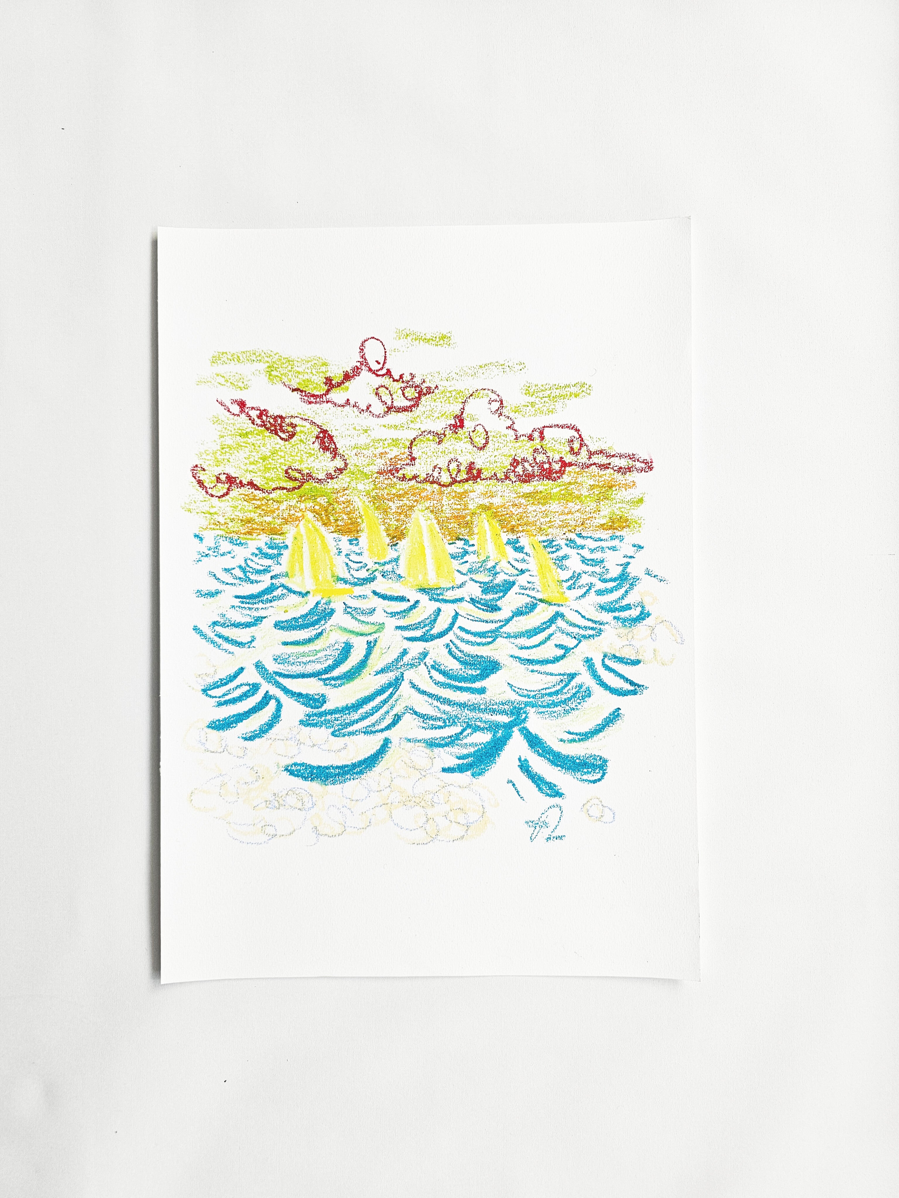 Original oil pastel drawing on paper, A3 format (29.7 × 42 cm / approx. 11.7 × 16.5 in).